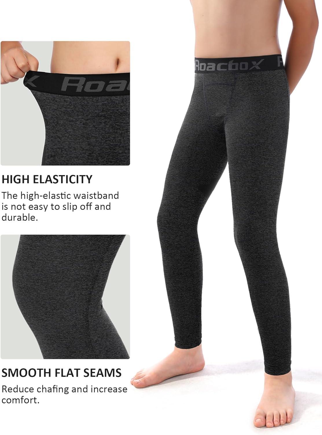 Roadbox 2 Pack Boys Compression Pants Leggings Base Layer Underwear Youth Quick Dry Spandex Tights Running Football(2pack:black+gray)