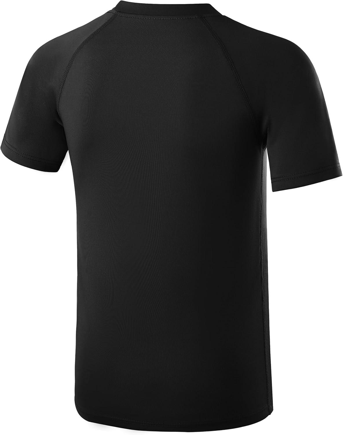 Roadbox Boys Rash Guard Swim Shirt, UPF 50+ Sun Protection Short Sleeve, Quick Dry Rashguard Water Shirt for Kids(Black)