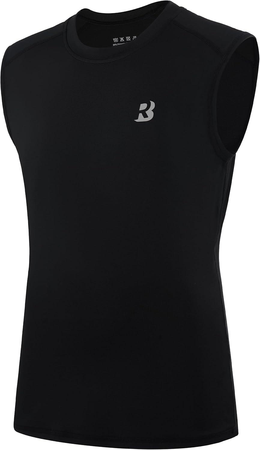 Roadbox Boys Sleeveless Compression Shirts, Youth Quick-Dry Football Undershirt, Athletic Tank Tops for Basketball Sports(B+black)