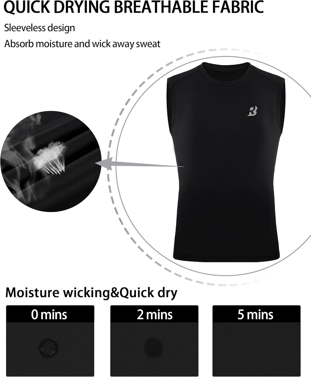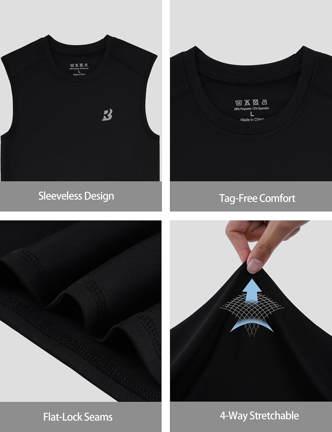Roadbox Boys Sleeveless Compression Shirts, Youth Quick-Dry Football Undershirt, Athletic Tank Tops for Basketball Sports(Black)