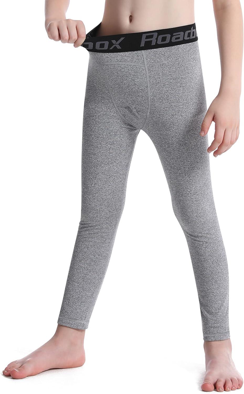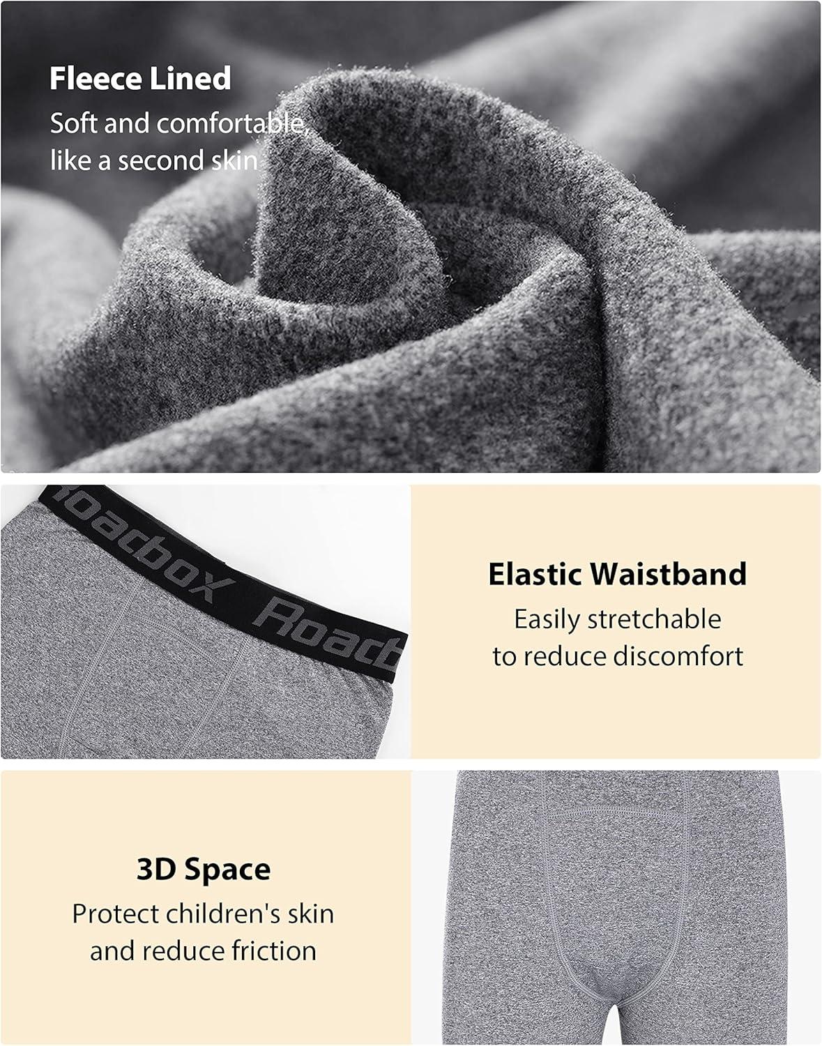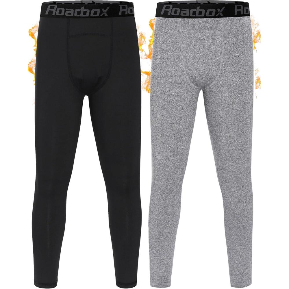 Roadbox Boys Thermal Pants, 2 Pack Kids Fleece Lined Leggings, Youth Sports Baseball Hockey Compression Tights Cold Weather(Black+grey)