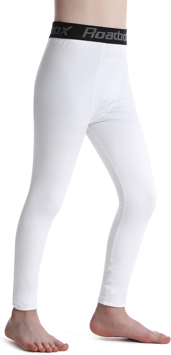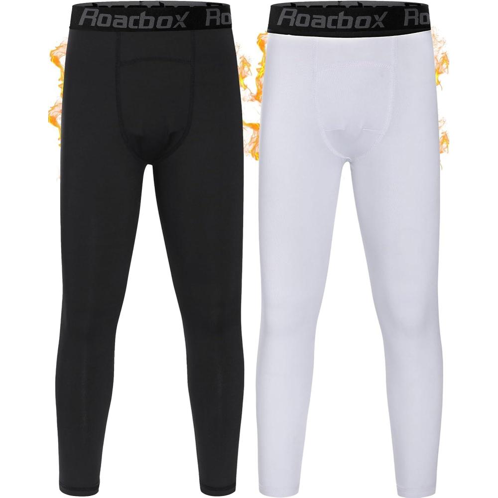 Roadbox Boys Thermal Pants, 2 Pack Kids Fleece Lined Leggings, Youth Sports Baseball Hockey Compression Tights Cold Weather(Black+white)