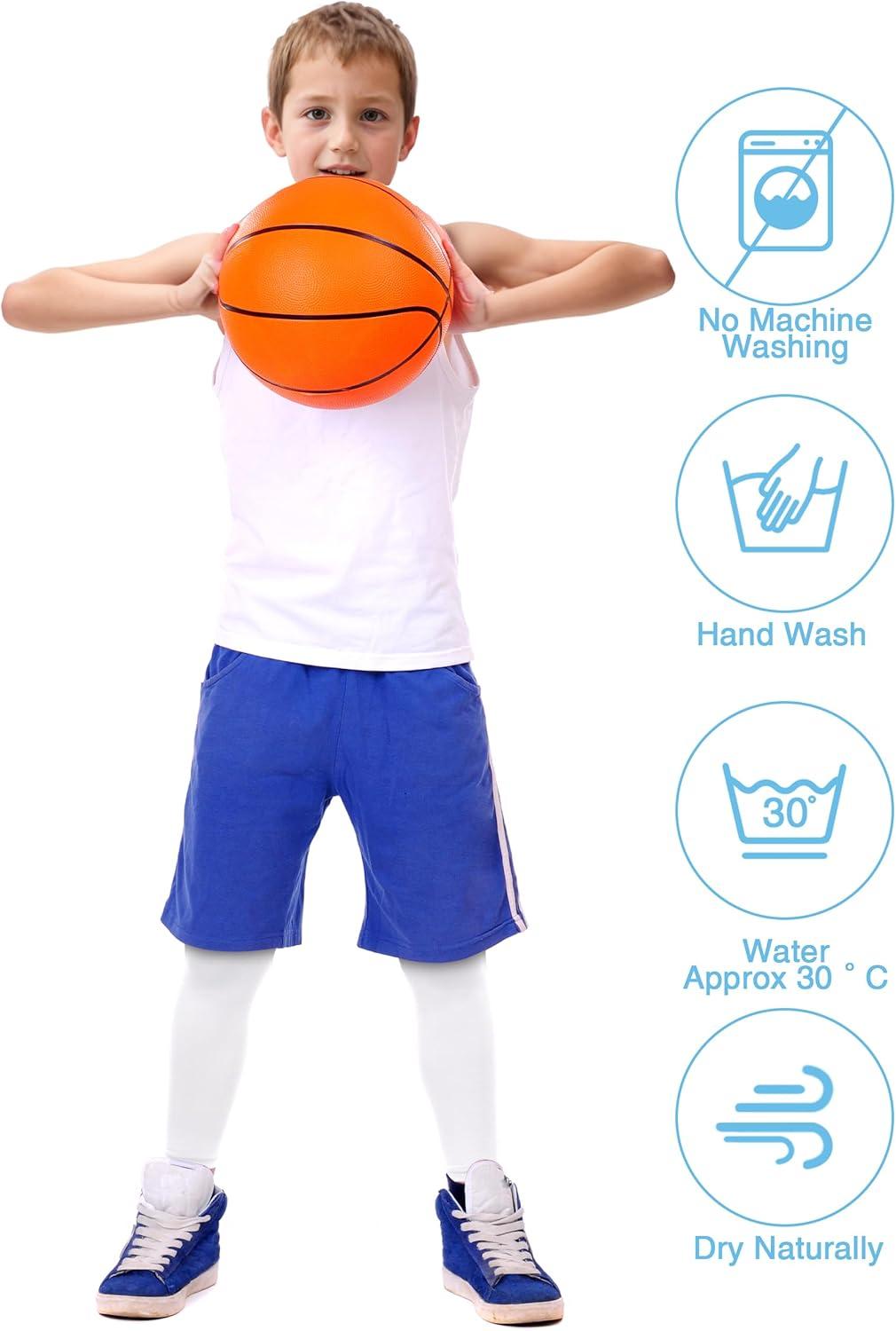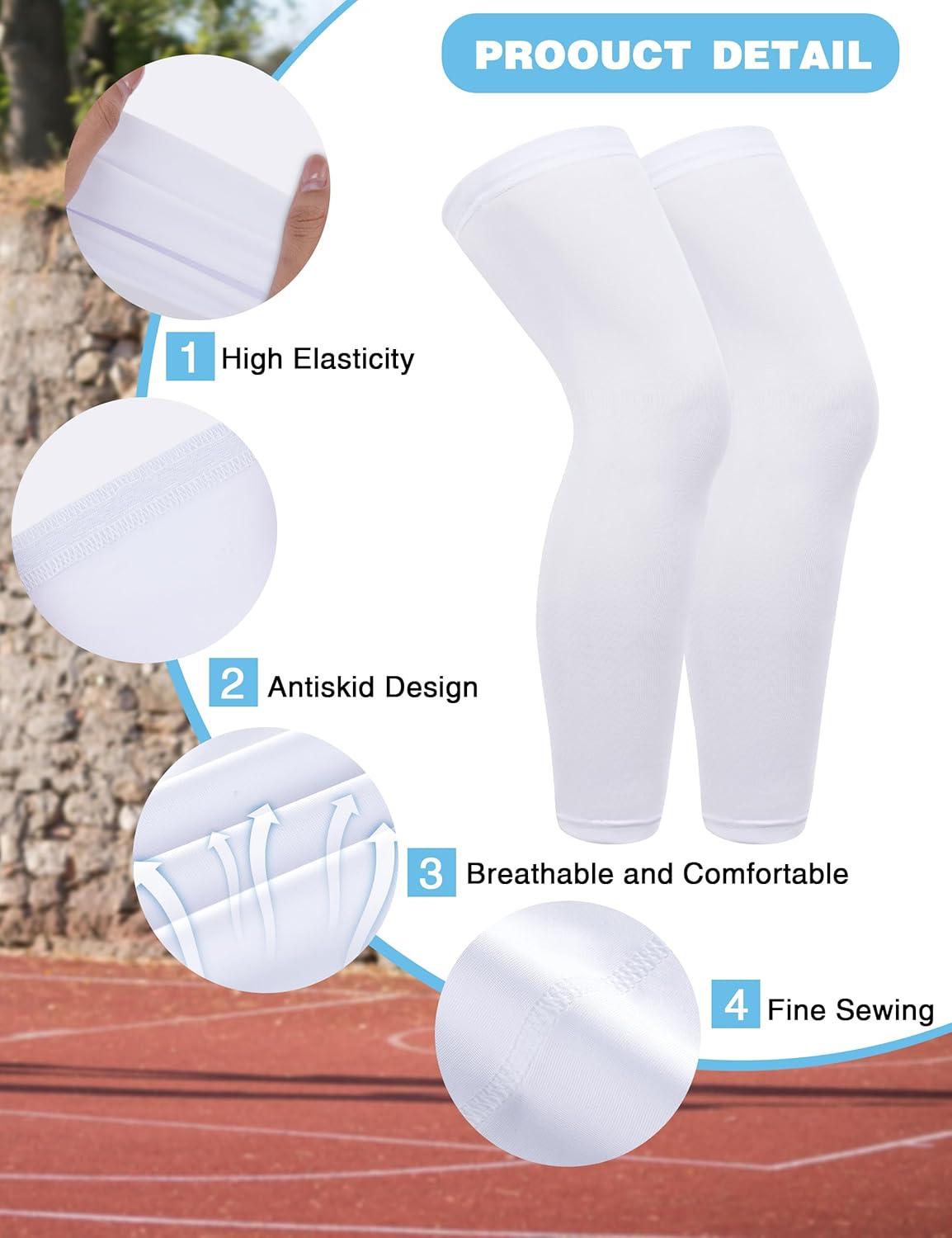 Roadbox Kids Long Compression Leg Sleeves, 2/3 Pairs Youth Sports Basketball Support, Football Running Cycling for Boys Girls(White+white)