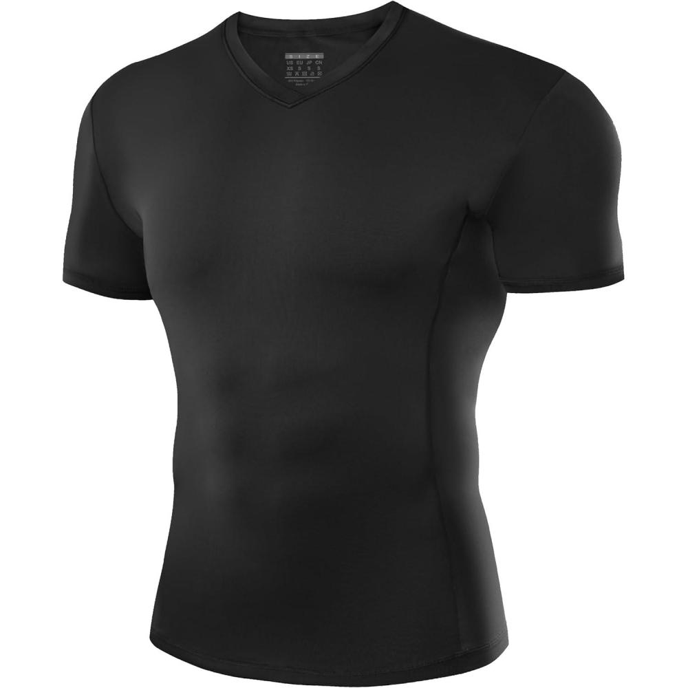 Roadbox Mens Compression Shirt Short Sleeve, V-Neck Gym Running Sports T-Shirt, Cool Dry Athletic Base Layer Undershirts(Black)