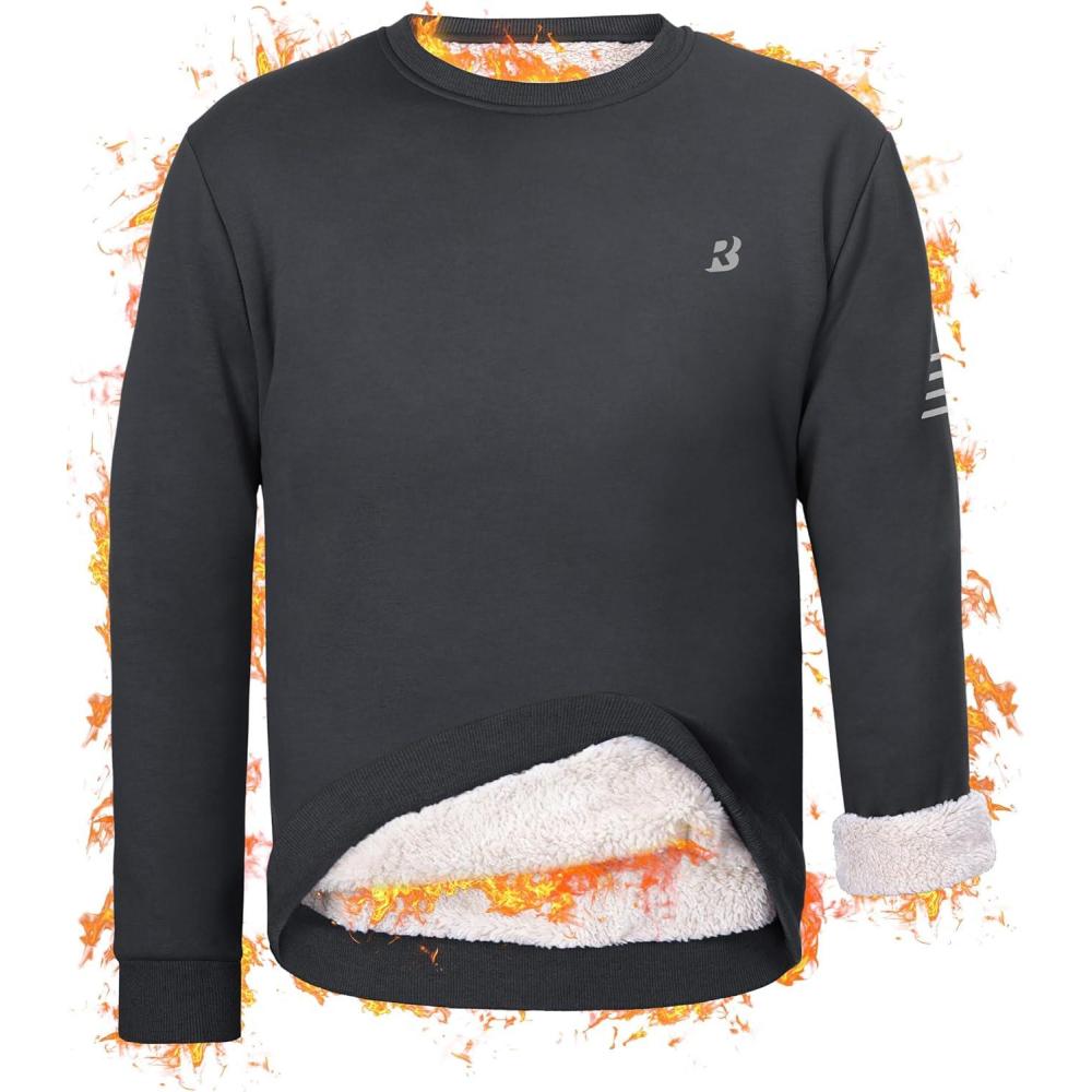 Roadbox Men’s Sherpa Lined Sweatshirt, Winter Warm Heavyweight Crewneck Pullover Tops, Long Sleeve Thermal Fleece Sweaters(Gray)