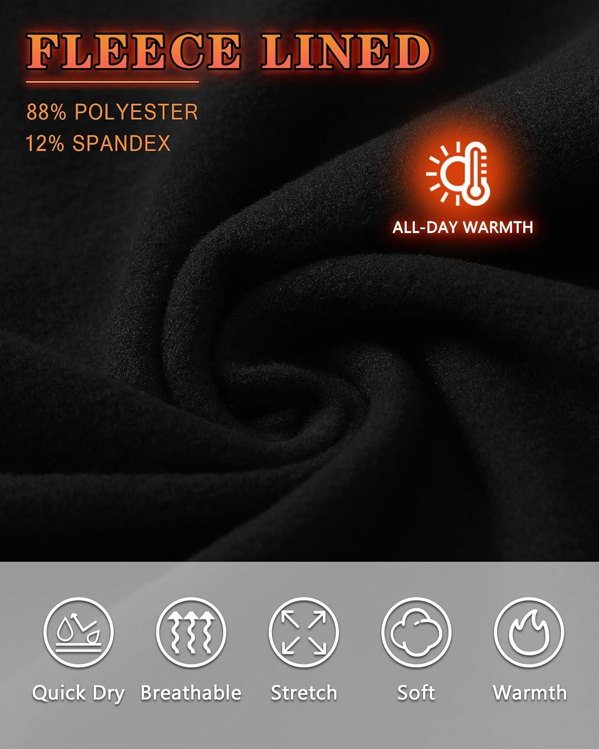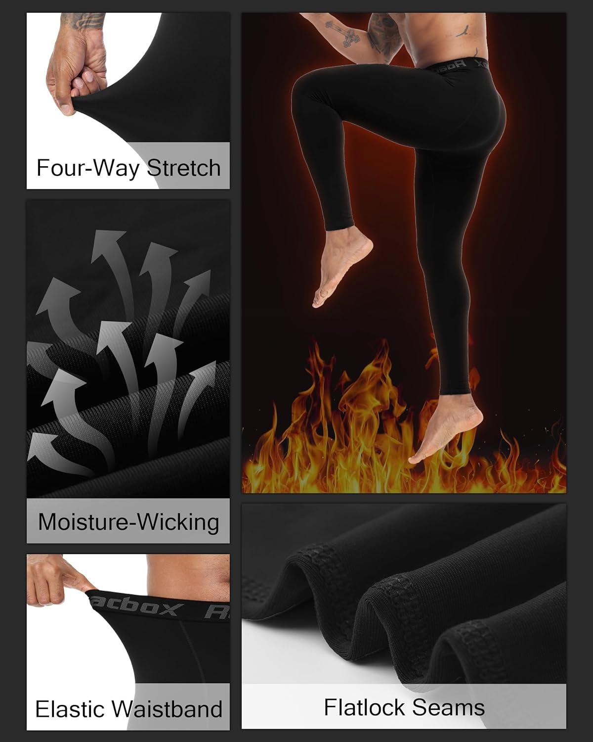 Roadbox Men's Thermal Compression Pants, Fleece Lined Running Tights Leggings, Athletic Ski Base Layer Bottoms Cold Weather(Black)