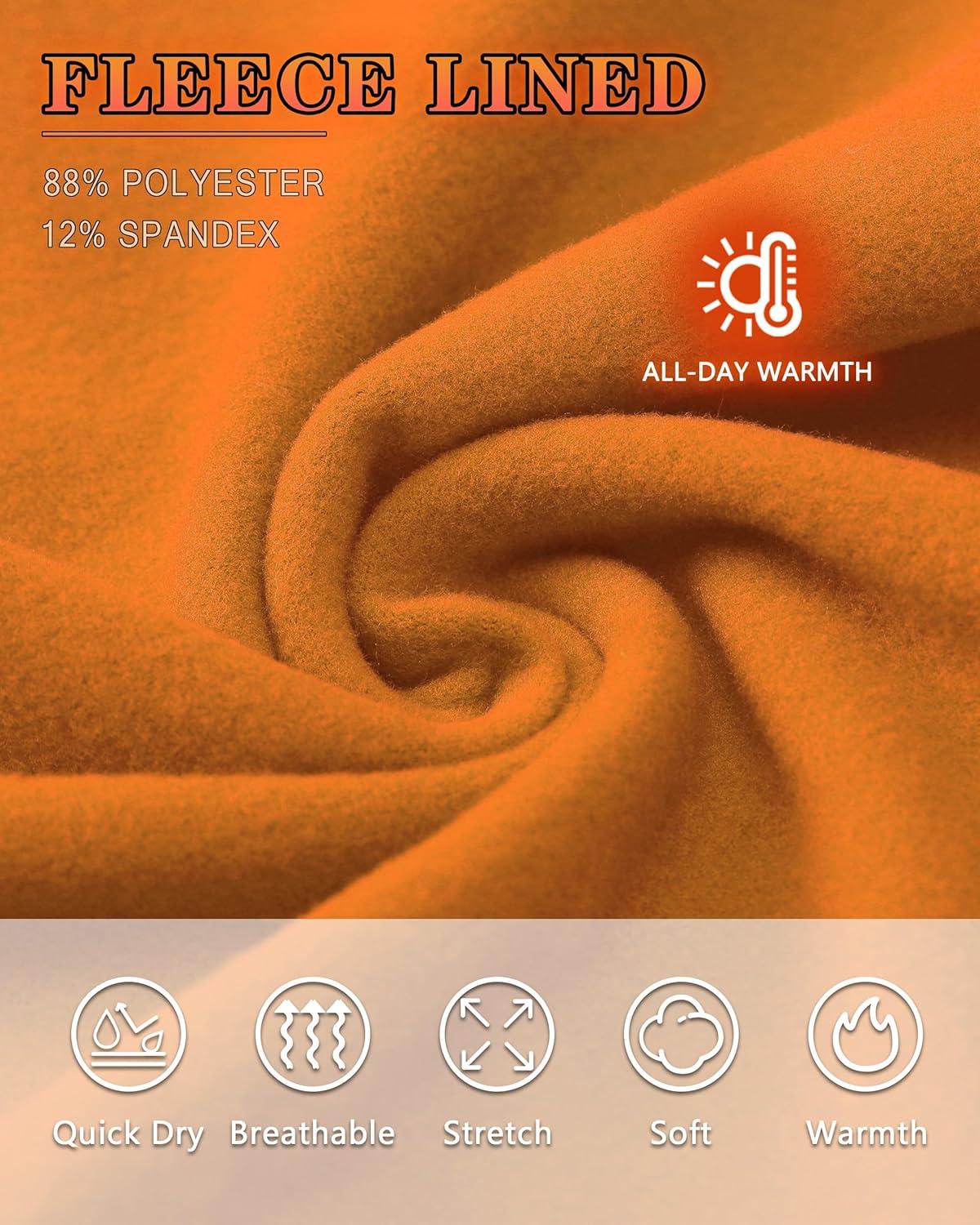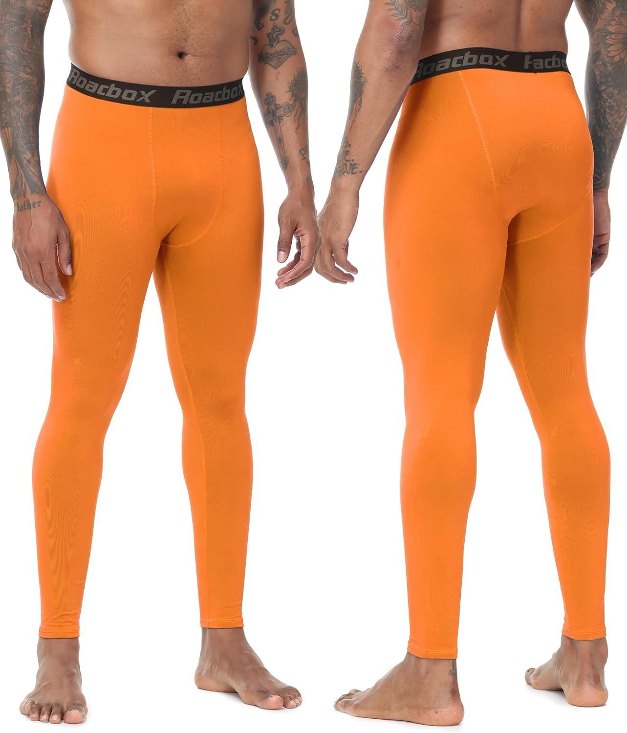 Roadbox Men's Thermal Compression Pants, Fleece Lined Running Tights Leggings, Athletic Ski Base Layer Bottoms Cold Weather(Orange)