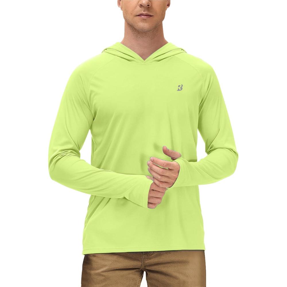 Roadbox Mens UPF 50+ Long Sleeve, Sun Hoodie Fishing Shirts for Men,UV Protection Hooded for Hiking Running Workout(Lemon Yellow)