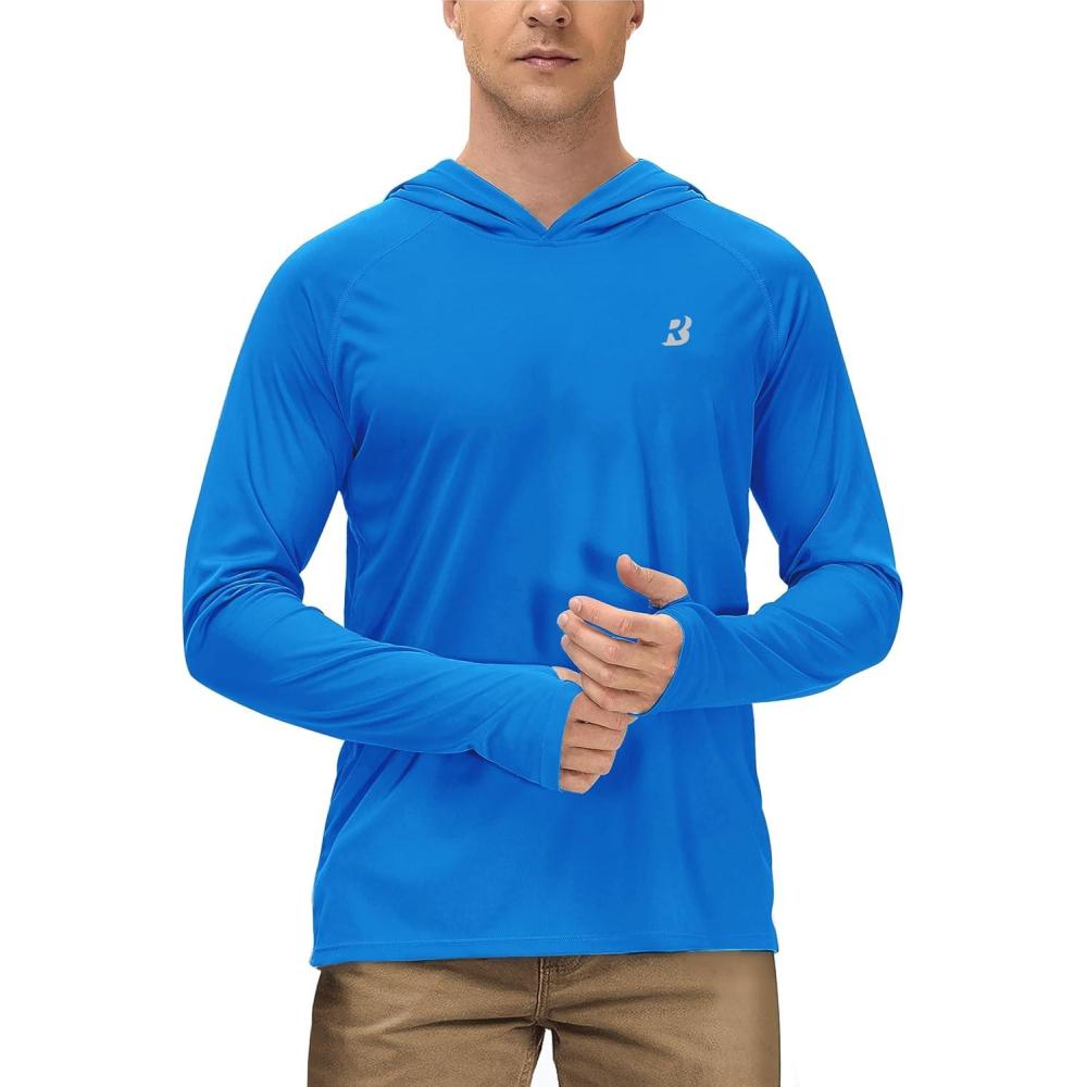 Roadbox Mens UPF 50+ Sun Protection Shirts, Outdoor UV Long Sleeve Fishing Hoodie Shirt for Hiking Running Workout Swimming(Lake Blue)