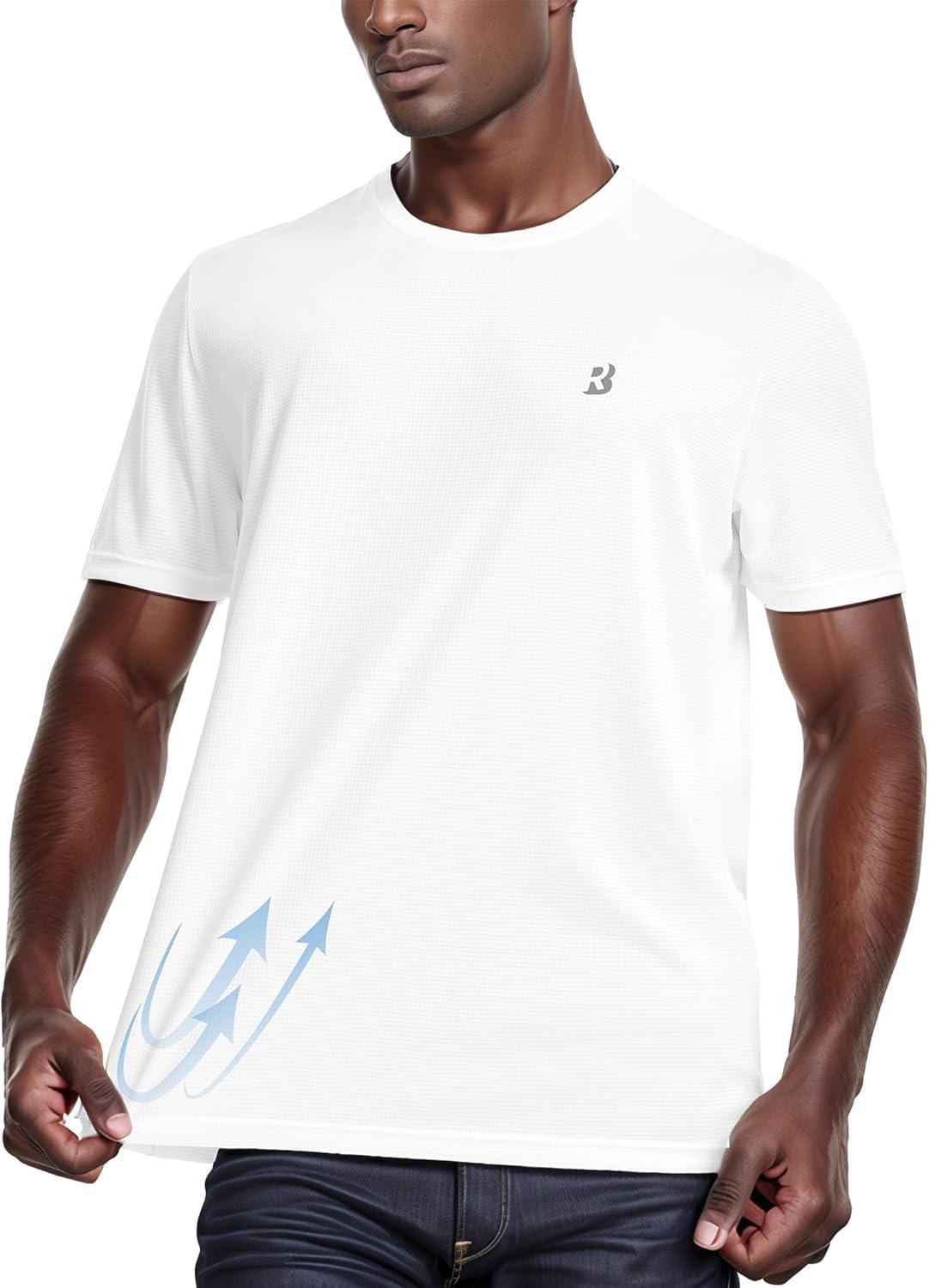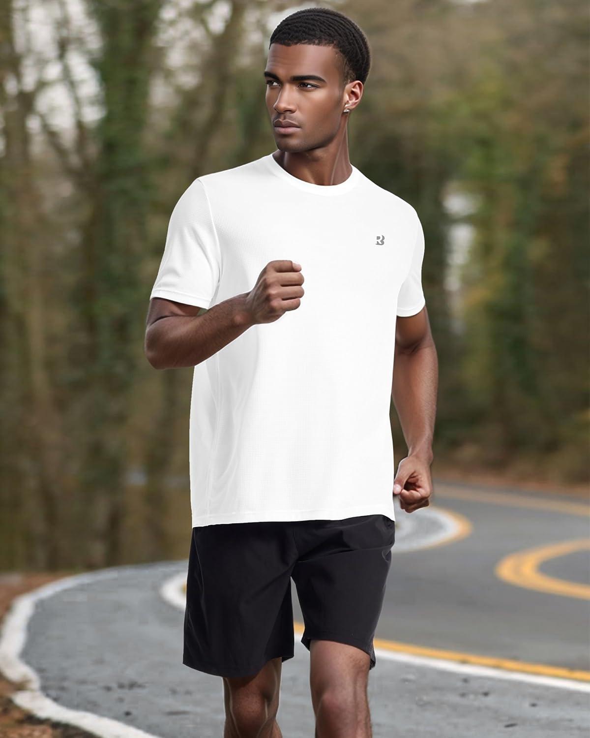 Roadbox Men’s UPF 50+ Swim Rash Guard, Short Sleeve UV Sun Protection Workout Athletic Shirts Quick Dry Gym Running Tee Tops(Solid White)