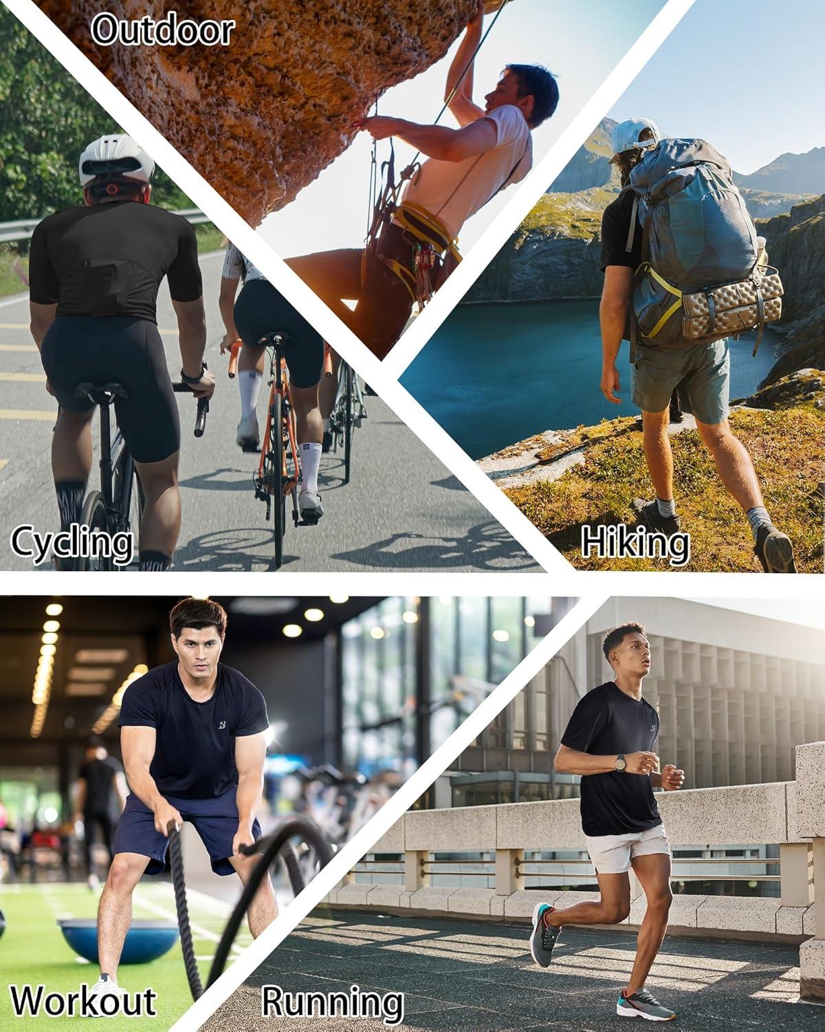 Roadbox Men’s UPF 50+ Swim Rash Guard, Short Sleeve UV Sun Protection Workout Athletic Shirts Quick Dry Gym Running Tee Tops(Dark Black)