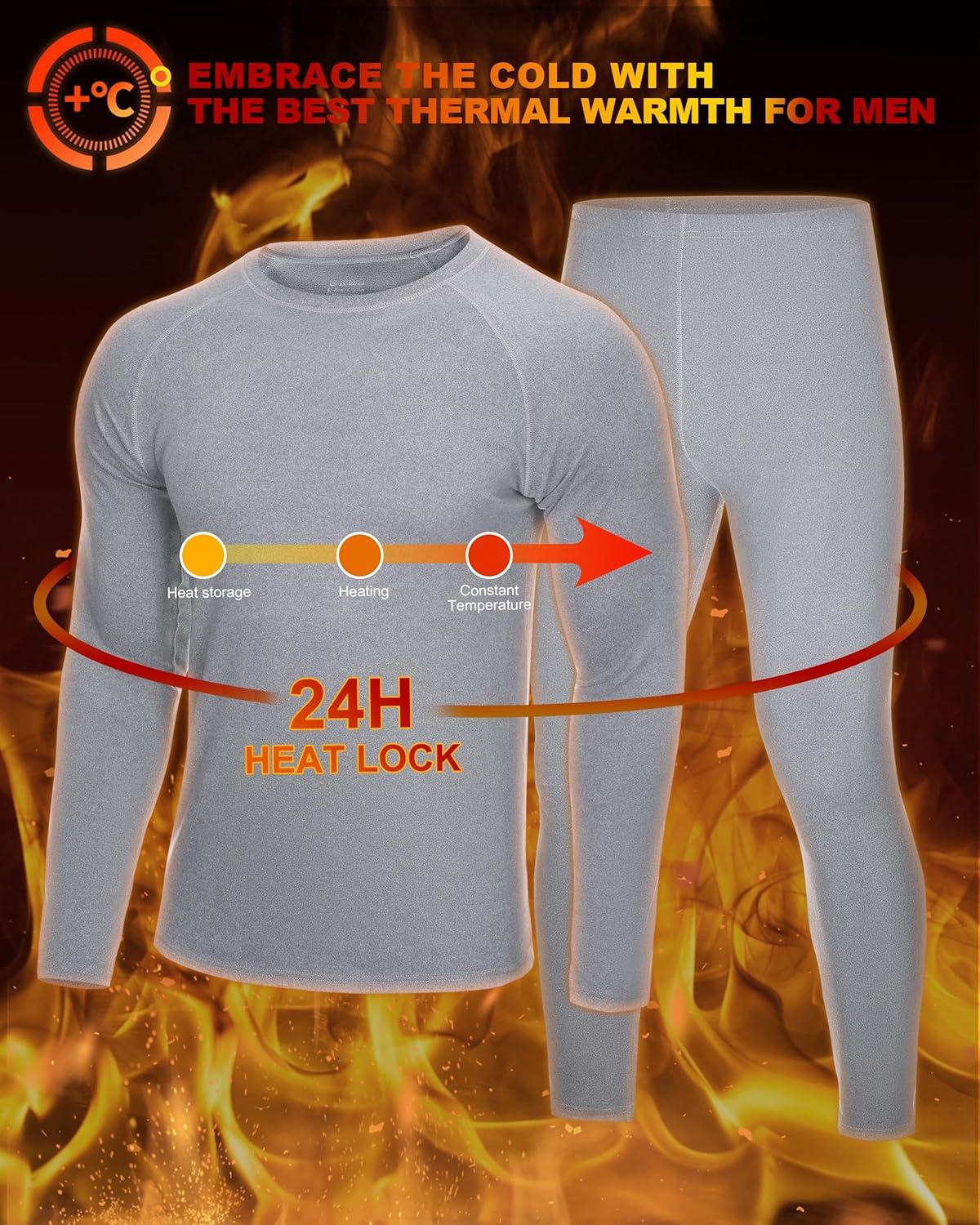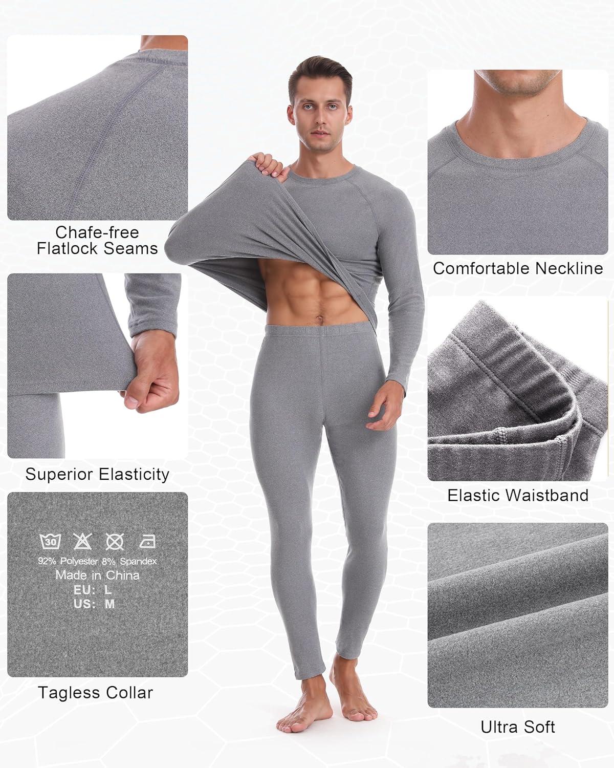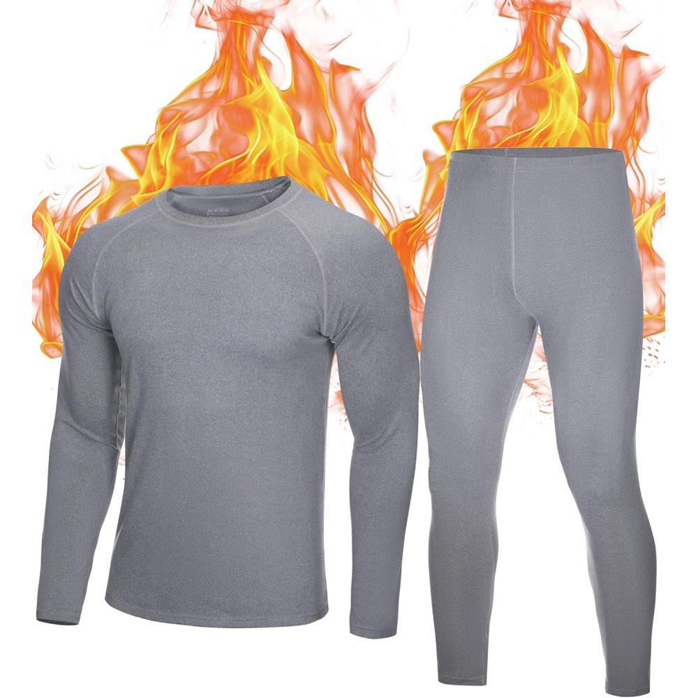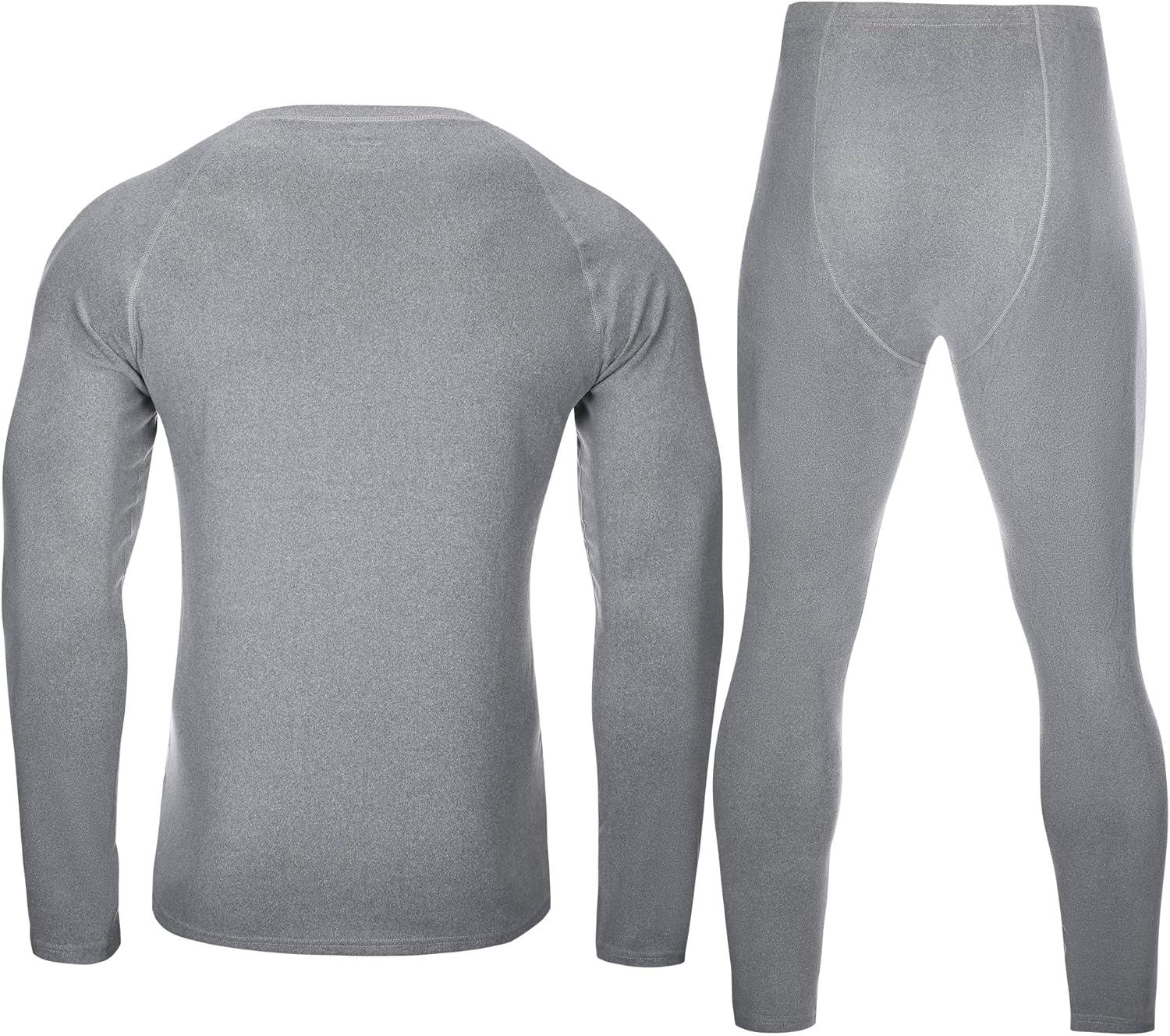 Roadbox Thermal Underwear for Men: Fleece Lined Long Johns Base Layer Ski Thermals Top and Bottom Set(Soft Gray)