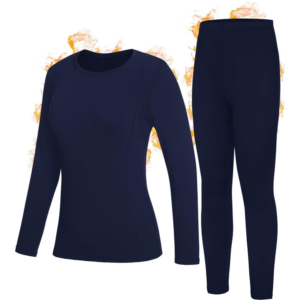 imageRoadbox Thermal Underwear Sets for Women Long Johns Fleece Lined Top ampamp Bottom Warm Skiing Base Layer Cold Weather WinterNavy Blue