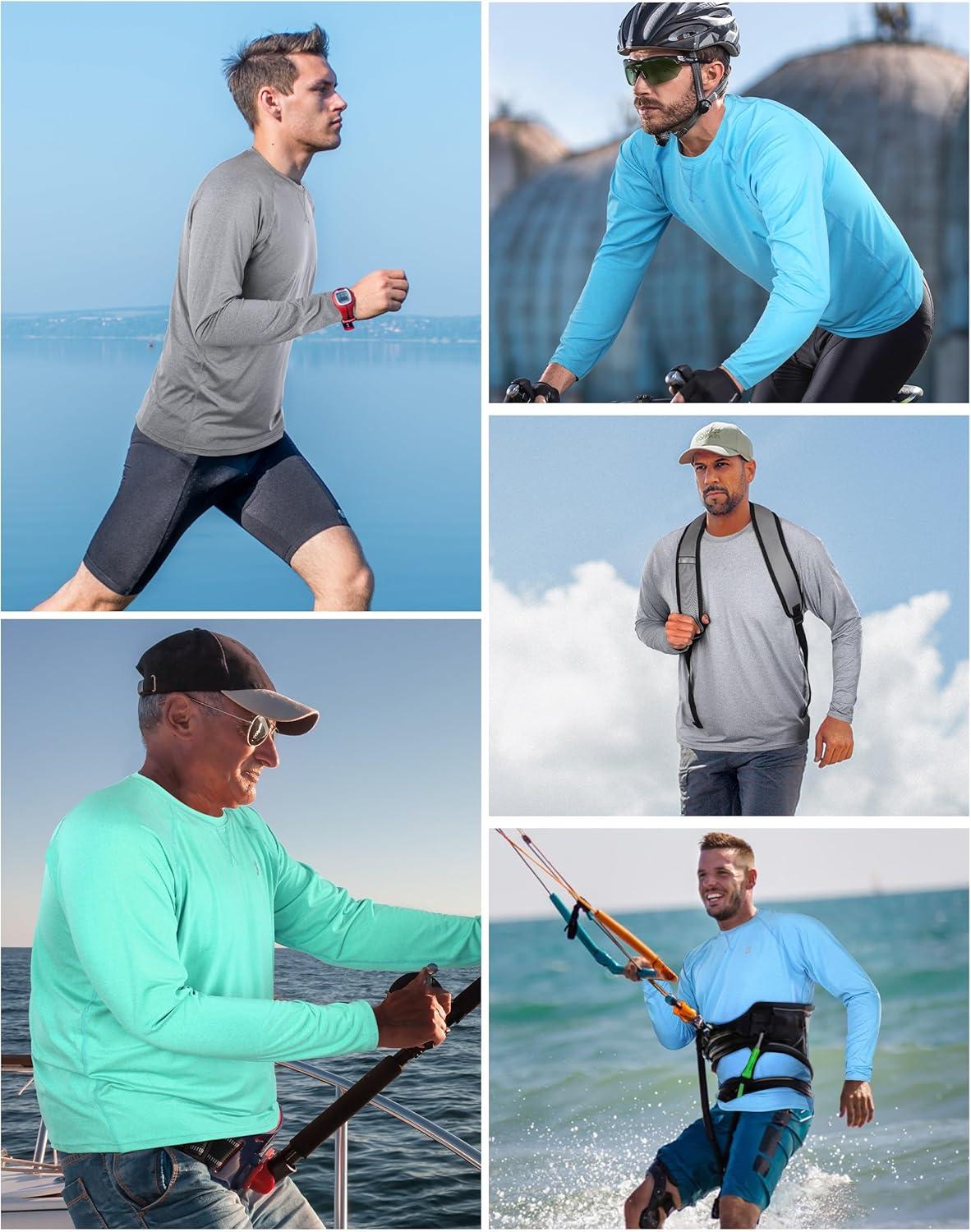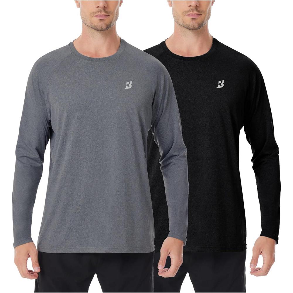 Roadbox UPF 50+ Sun Shirts for Men, UV Protection Long Sleeve Swim Shirt, Lightweight Rash Guard for Fishing Hiking Running(2 Pack – Light Gray+dark Gray)