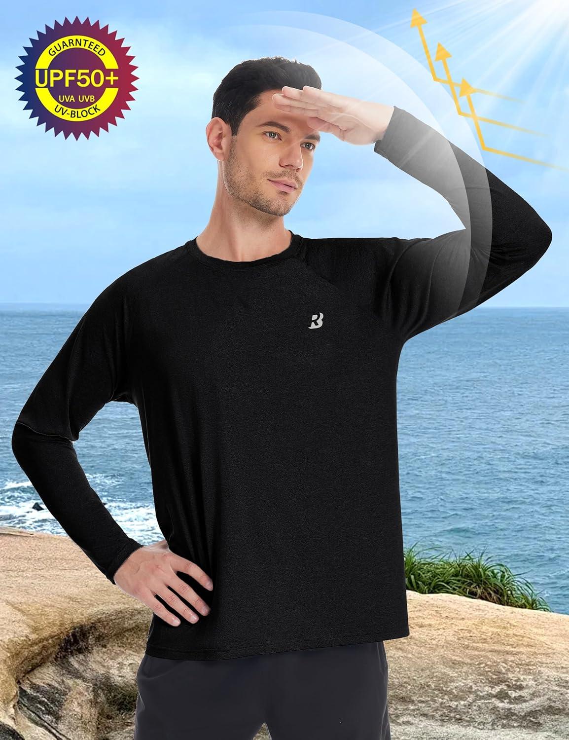 Roadbox UPF 50+ Sun Shirts for Men, UV Protection Long Sleeve Swim Shirt, Lightweight Rash Guard for Fishing Hiking Running(2 Pack – Cation Green+blue)
