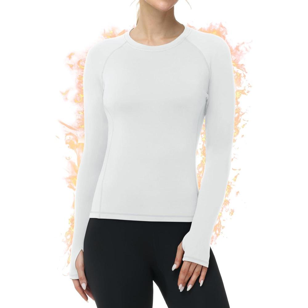 Roadbox Women Thermal Shirts, Warm Long Sleeve Fleece Lined Underwear Tops, Winter Ski Workout Base Layer for Cold Weather(White)